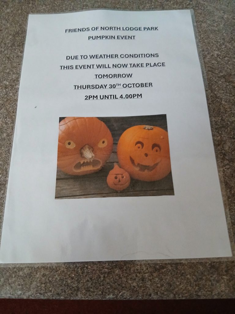 Coming to North Lodge Park at October Half Term Wednesday 29th October on the Croquet Lawn from 2.00pm until 4.00pm come along and carve a pumpkin for fun. This is a free event.